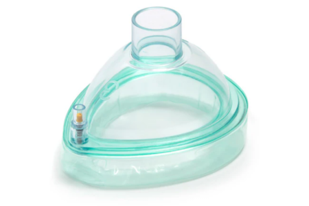 A single use PVC anesthetic face mask with adjustable cushion.
